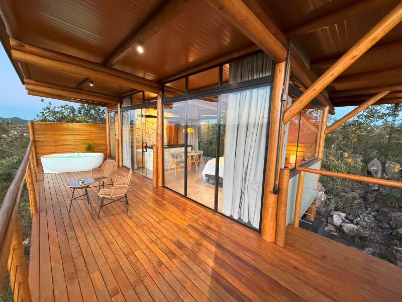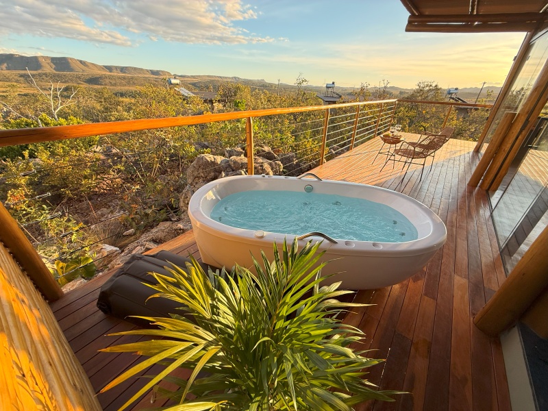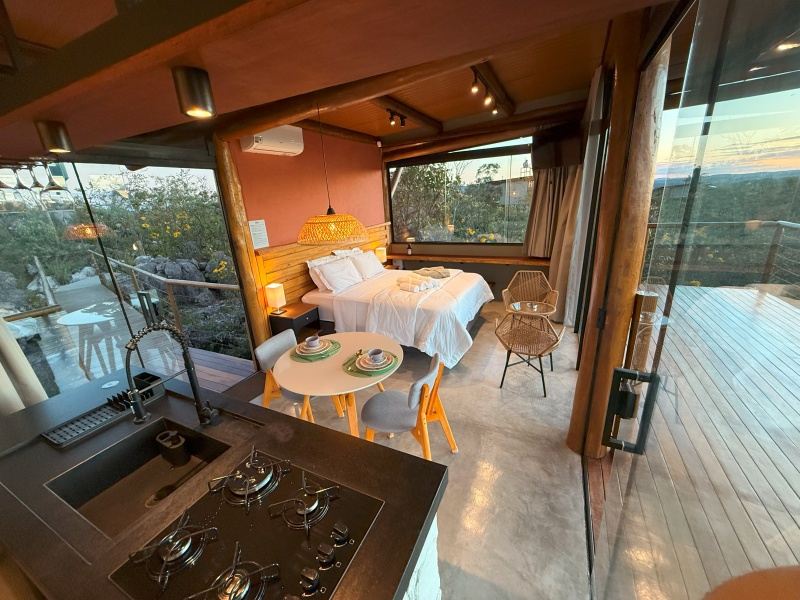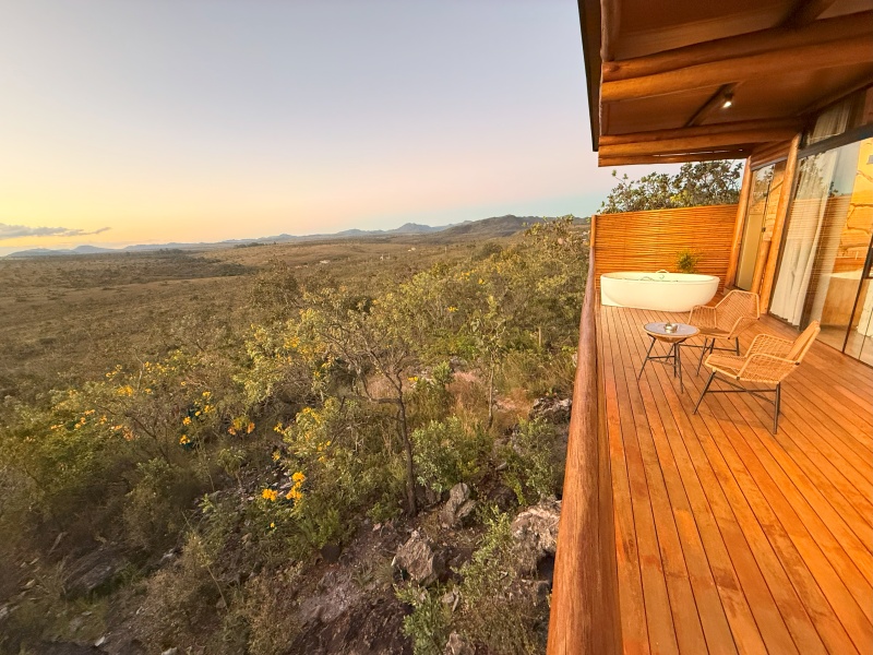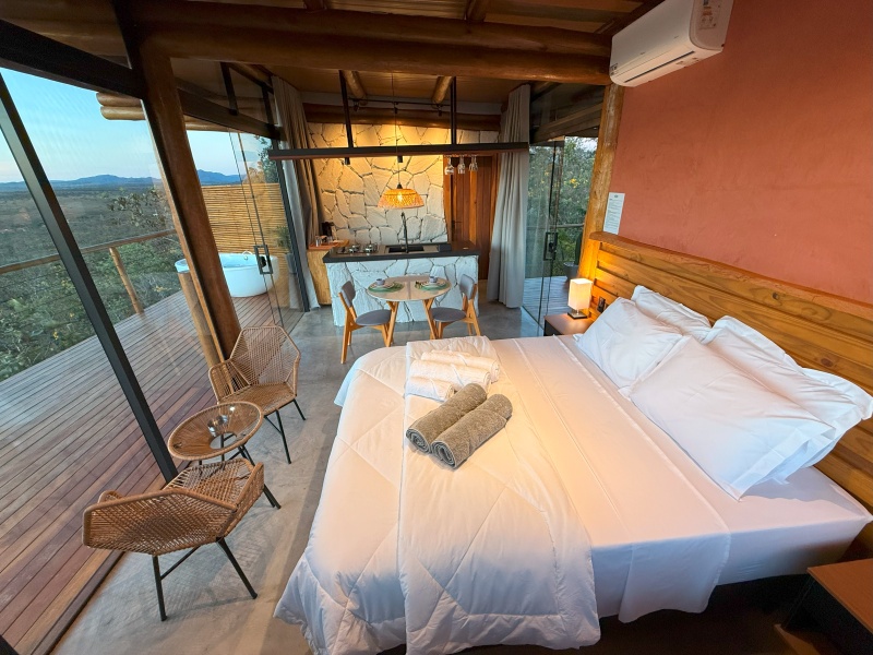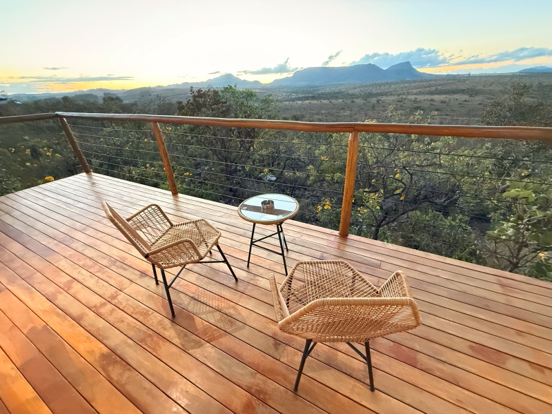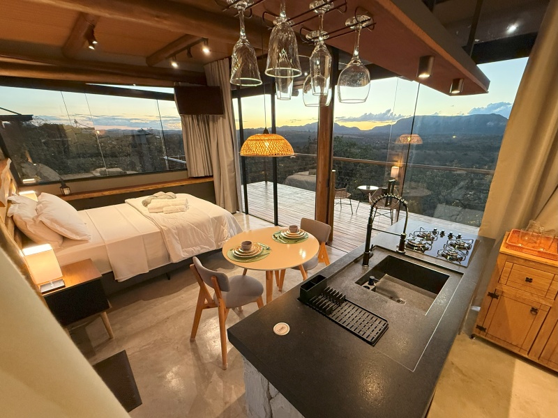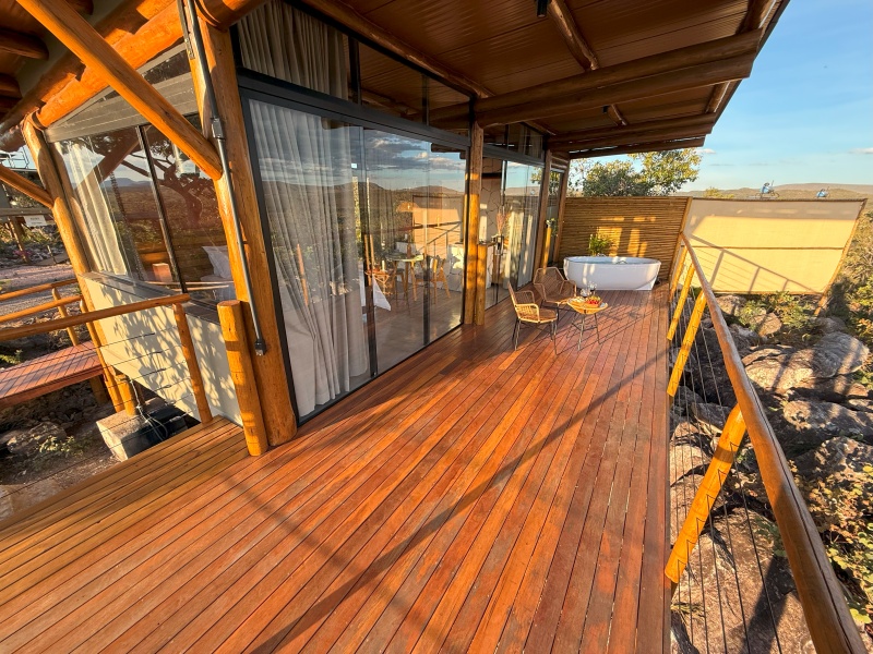 Experimente o conforto e o charme da Chapada dos Veadeiros em nossos chalés com arquitetura rústica e aconchegante, ideais para casais ou viajantes que buscam tranquilidade e contato com a natureza. Cada chalé pode oferecer uma vista panorâmica deslumbrante do Morro da Baleia e Morro do Buracão — cenário perfeito para relaxar e se desconectar.
